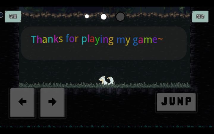 环境的光亮能提高角色跳跃能力和移速,总共有三个光亮级别会在屏幕上方显示,无光、微光、强光,在强光下会直立行走,是福瑞哦(四足行走时摇着尾巴也很可爱呢)!