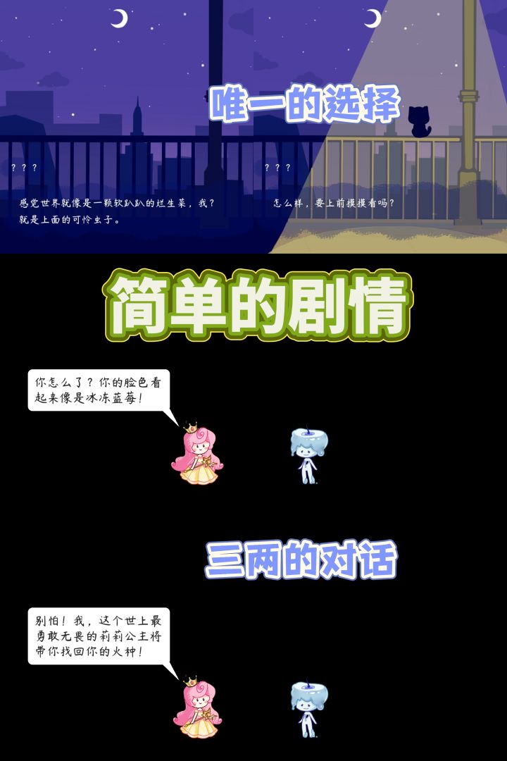 后期是进入个平台跳跃世界内、公主与蜡烛人之间的冒险救赎(点个火种即可)。