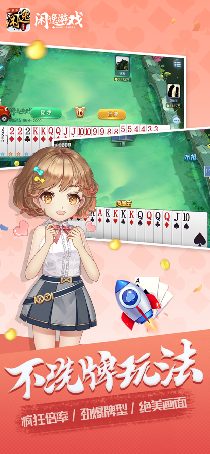 经典跑得快、经典斗地主、干瞪眼、升级、三打哈等海量游戏玩法