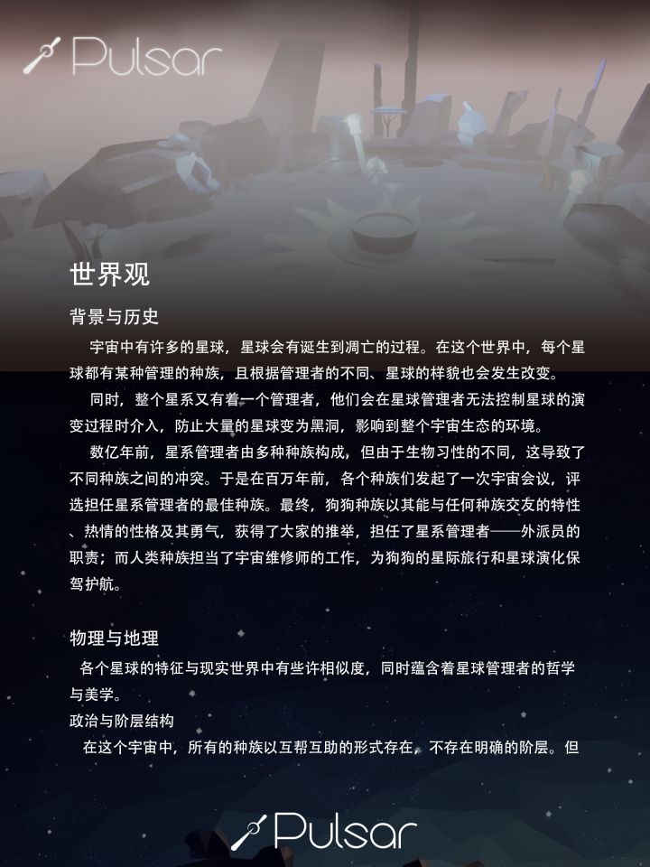 #我的游戏日记vol10 #TapTap聚光灯独立游戏 #聚光灯gamejam #墨鸽鸽的冷门游戏日记 #脉冲星 #宇宙 #画风绝美 #新游安利 #新游试玩 #实机演示 #pulsar #冒险游戏 #探索 #科幻 #狗狗 #小狗 啊啊啊啊狗狗宇航员太可爱了吧 总体来说画风值得一看,没有引导所以要自己摸索过关方式⬇️⬇️⬇️喜欢小伙伴速速入坑呀