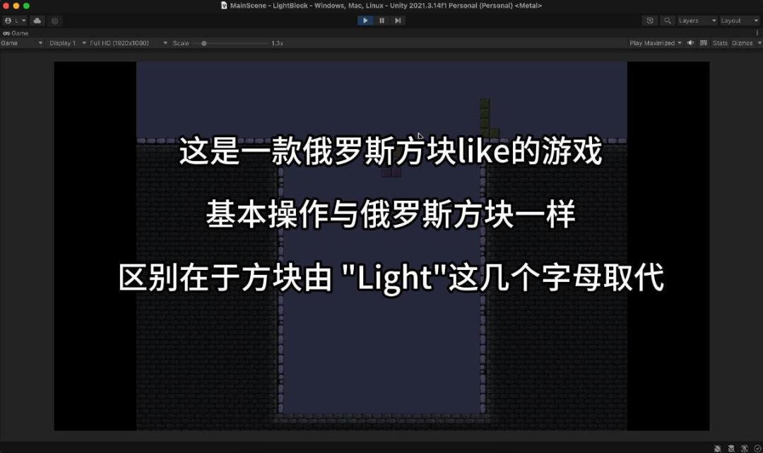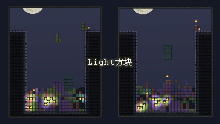 2024年10月21日 - 「聚光灯 GameJam」 - 开工第三天 [表情_微笑]完全按照上一篇日志中提到战略方针计划进行:“谋定而后动,先 Hold 住 10 天再开工。“ 时间紧迫,一晃眼就过去了3天。 原计划做一个「2D 横版解谜」,不过在设计某个解谜关卡时,发现这个关卡都可以做成一个游戏。于是,整个Demo变成了致敬百玩不腻的俄罗斯方块,其中的玩法增加了Light元素。 视频中放了几个