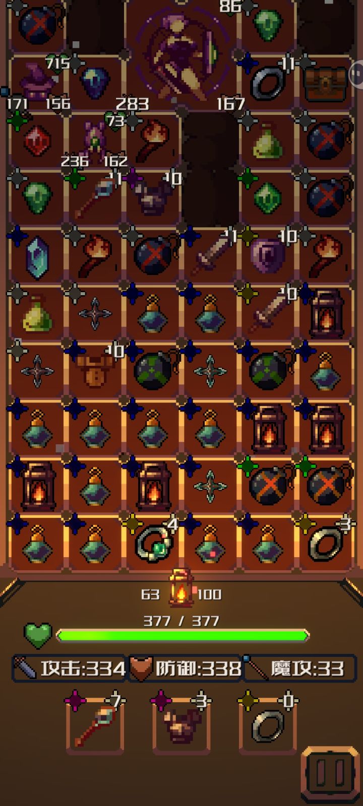 地牢题材的肉鸽游戏,点击操作进行交互行为,突出选择策略。有比较完善的图文教学,看明白上手不难。宝箱开出物品与合成都有一定随机性,装备本身有品级和词条的差异化,在策略选择时需利用这些因素。