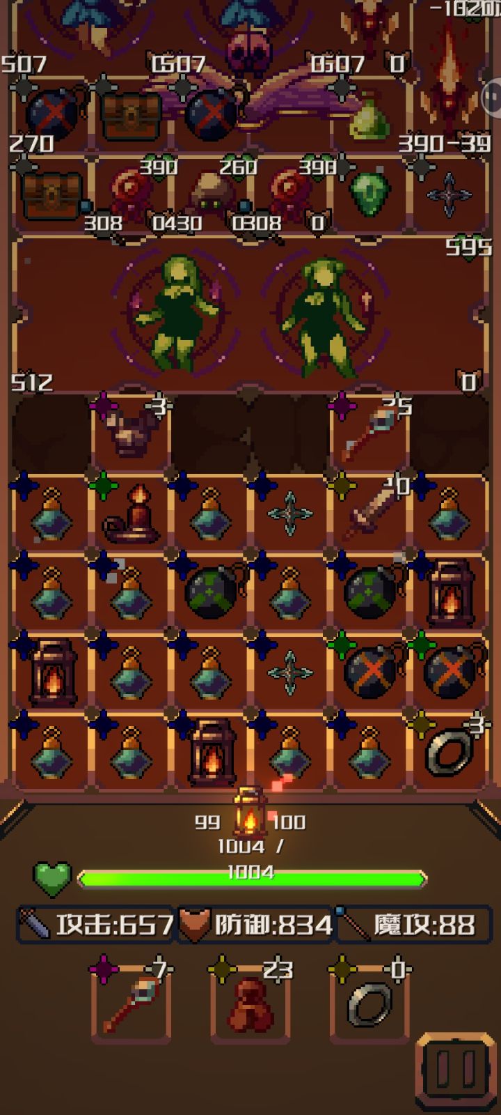 战斗是回合制的,点击可以完成一回合战斗,怪没死会反击,有点像魔塔的战斗机制,但玩家有先手攻击特权,可以算计好了再打。