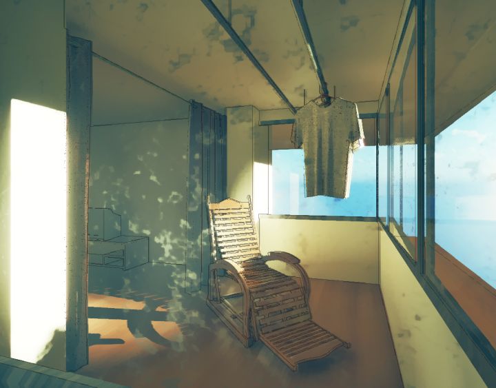 场景搭建过程展示 - 客厅和阳台