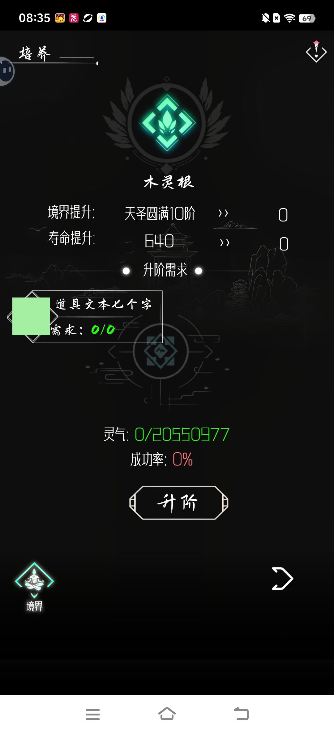 因为游戏正在开发中,很多功能还没有加上,我先初步说几个建号的小攻略,大家可以留言区一起探讨一下 1、开局建号 福源比灵根重要一点,因为目前福源没有增加途径,灵根在提升境界时可以逐步增加 其次世界的破坏程度也很重要,最好彻底毁坏的世界数量在2个以下 目前自杀还没有限制,大家可以多刷几遍挑个好的再开始玩 2、突破境界时 一定要刷满道心,这样突破后增加的灵根与寿命更多,目前游戏不完善,只有突破时点击小星