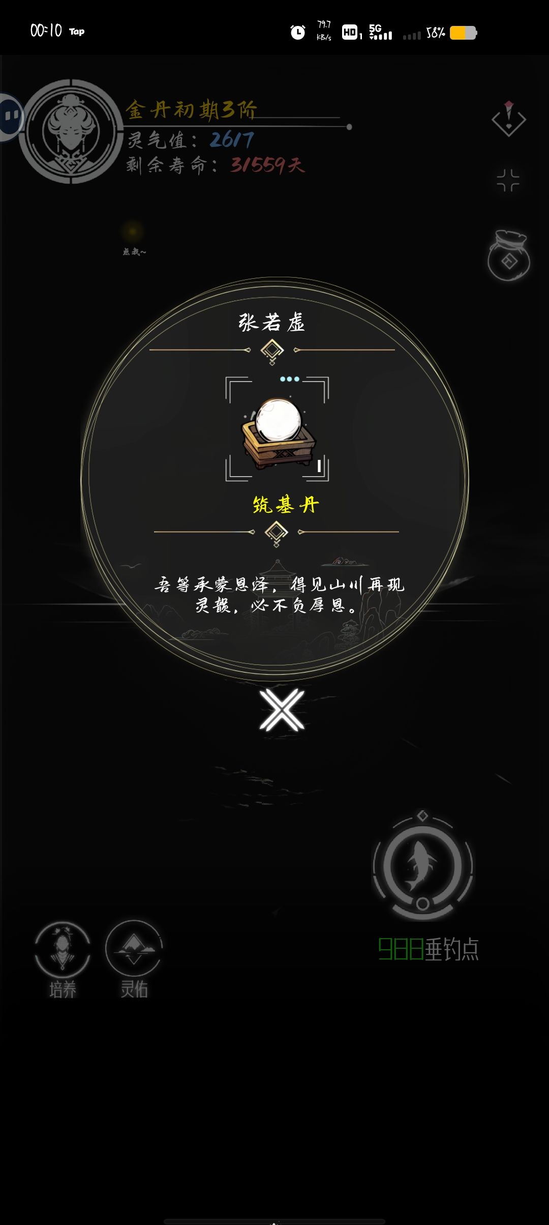 吾二次轮回成就至高,修行两世多有感悟,或可与诸位道友论道,垂钓机缘浅,四方游历方可筑基,万千岁月如流水,朝夕方可成至高。 筑机丹无法通过垂钓获得,垂钓只能获得晋升的材料,开辟灵州可以挂机,收获到丹药灵材,只要寿命不耗光,你就可以一直突破直到登顶最高,目前垂钓点只能通过每日刷新,还有挂机获得,建议增加更多的玩法,例如修为增加战斗力,增加可以降妖除魔来获得灵材,增加一些随机事件,比如突破的途中多有感悟