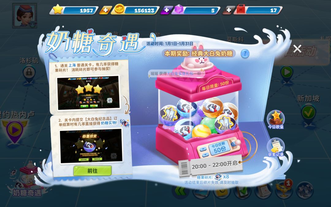 新手空姐们看这里 🔵机场解锁顺序 我们刚进入游戏时是先解锁的丹佛机场,先把丹佛机场打通关,会出现悉尼的解锁通知,而后就是纽约和伦敦啦。这里建议!先不开!!我们先打完一个超难,积攒点钻石去升级先有的机场 🔵升级攻略 机场升级优先升级主食:主食就是乘客必吃的,例如丹佛的汉堡和鳕鱼,悉尼的蔬菜、牛排和虾等等这些…把主食拉满后期超难就不会送太多纪念品啦, 🔹千万不要‼️ 千万别配餐拉满主食不升级!配餐:像