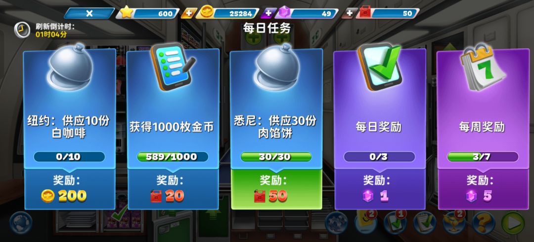 如图1-9为界面介绍 🔵新手空姐们没有钻石、金币、燃油怎么办? 🔹钻石可以通过:刷笑脸、过机场内任务、过日常任务、完成成就里任务、完成超难24关获得 🔹金币可以通过:通关普通关卡、完成金币赛关卡、完成日常任务、通关锦标赛关卡、通关超难关卡获得 🔹燃油上限是50桶,开了月卡的玩家上限为80桶燃油。当燃油数不足50、80桶时,会自动恢复燃油(12分钟一桶)从0恢复至50桶需要10个小时 🔵金币赛是什么