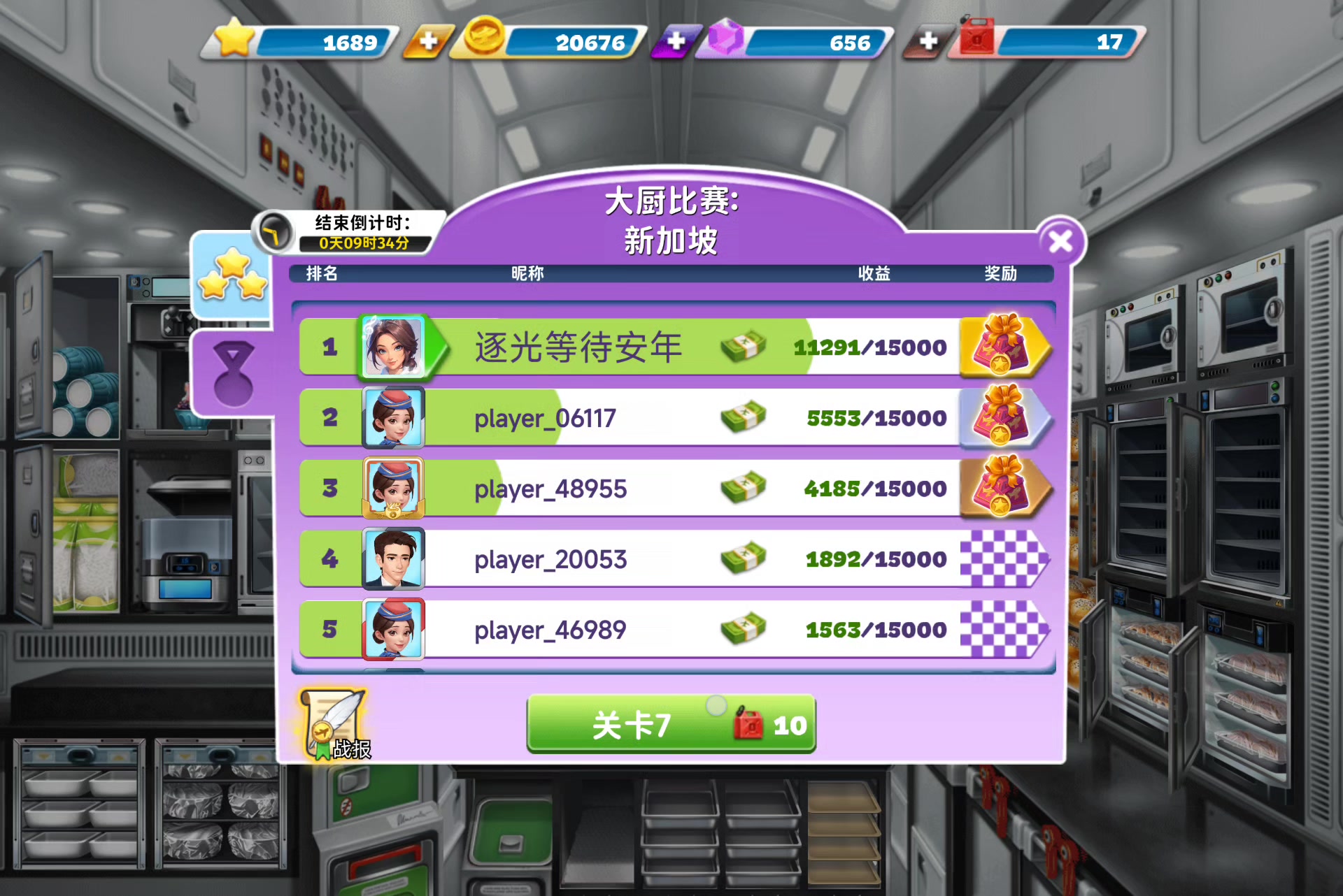 我的升级是56-69(emmmm…其实座椅升的偏高了,我觉得座椅升级纯看手速哈。) 然后这关没用纪念品,刚刚好足够三星的。说明食材也略高,其实可以用纪念品补,如果没有打超难的需求的话确实不用升这么高的。[表情_捂脸哭] 这关其实可以根据视频参考一下两个锅食材的准备顺序,这个真的蛮重要的,然后这关馕的需求量一般,但是那个烤鸡要的是真的多,需要不停的做。另外那个酸辣酱,我真的十分建议在食品室开一个酸辣