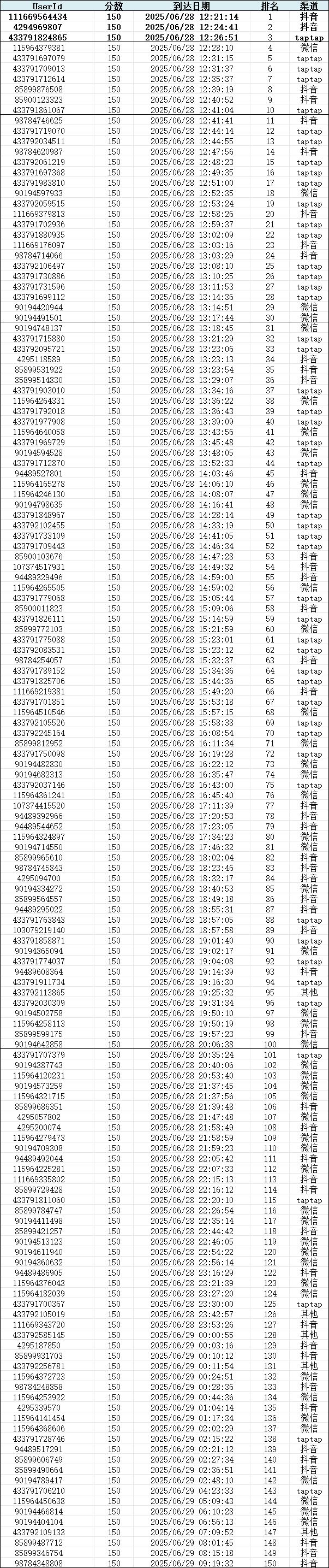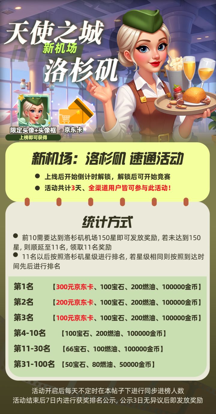 7.3日四编速通奖励已发放,请至游戏内邮箱查收。6.30日三编:新榜单,现将头像和头像框获取人数顺延至150名~~~~=============================6.30日二编:洛杉矶排名来啦~~~==============================亲爱的各位玩家: 大家期待已久的【天使之城洛杉矶】版本将于近期更新。洛杉矶机场将于 2025.6.28上午1