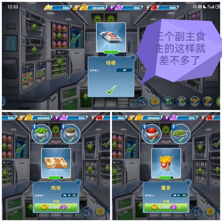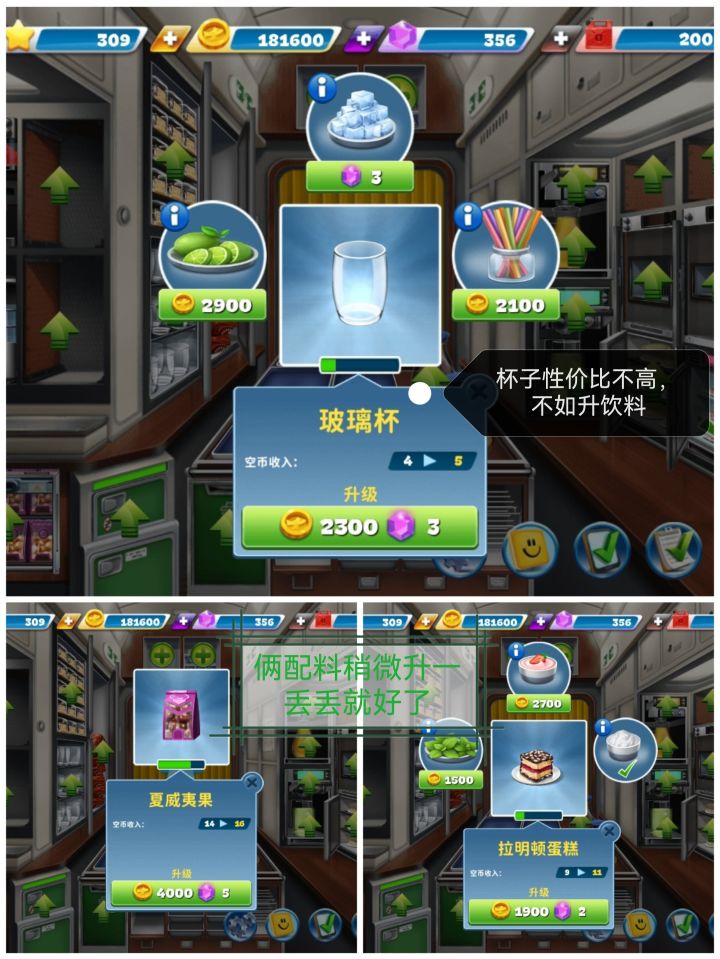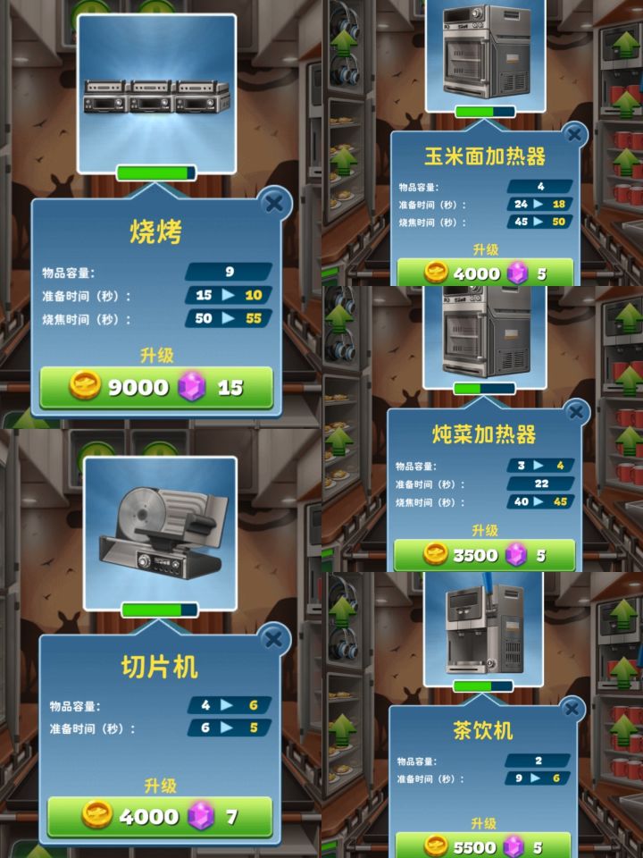 以下全是基于个人玩开普顿超难的经验哦,仅供参考!先说食材,主食的重要性不言而喻,建议全部拉满哦,那个杖鱼的话如果不想费钻可以不用拉满,因为24关要的相对少一些;比尔通和水中花24关要得也很多,建议拉高一点。其他的其实照着图里面的升级就好了。友情提示,不要升级杯子哦,不划算!然后是机器,烧烤架个人建议升到3格,15秒完全OK的,个人感觉2格有点来不及;玉米面20关要得特别多,3格可能来不及,建议