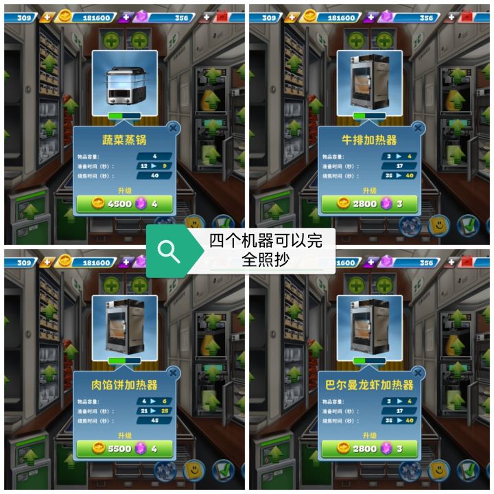 悉尼作为玩家开通的第二个机场,其性价比也不言而喻。同时由于球球的超难不会一周重复刷同一个机场,所以备好悉尼的超难来为后续攒资源也非常重要,接下来就让我们看看悉尼超难要准备些什么吧! 食材和机器可以根据图片参考。打超难的主要思路还是升高主食,配菜酌情升级,机器够用即可。 ❌注意:悉尼的保温器不建议开,图片所示的机器速度完全用不到。同时千万千万❌❌❌