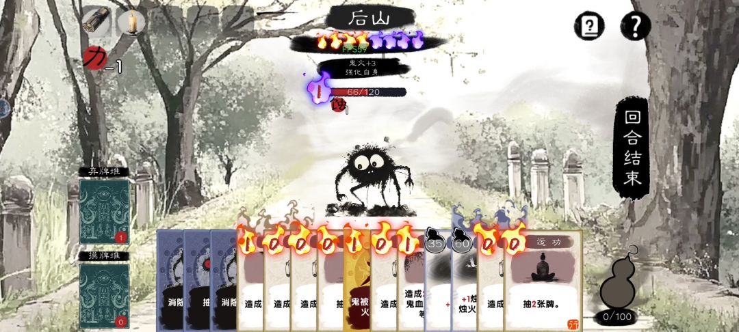 只能说通关很看运气,卡牌不完善,只能玩抓鬼套路,清鬼火抓鬼,囤鬼牌,鬼牌不会因为回合结束而弃牌(鬼牌效果都挺好的,抽五牌,回二烛火,消指定鬼火,加伤害我认为是最废物的只能说聊胜于无),黄牌就选有抓鬼效果的,还有就是一张消灭(抓也算)鬼回两烛火的附着牌。白牌呢,就选回法力的还有抽牌的,回法力的一般和鬼火挂钩。开局的两关暗巷最好要完美通关,计算好烛火消耗,每关都抓一只鬼囤鬼牌,这样子暗巷过完就有四烛火二鬼牌了。后面一定要选法宝虽然是随机的,法宝里面,我觉得好用的是用四张牌抽一张,还有用鬼牌回烛火。选牌时不需要就不要拿避免卡手会要老命的,剩下的就看运气了。之前给我玩红温了直接通宵才通关一次😡