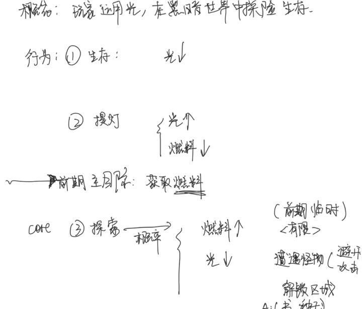 连着写了两天代码,核心内容基本实现,明天传包,这会来补一篇开发者日志图是早期构思的时候一些草稿(字丑勿怪)(OS:和现在开发完的版本相比几乎没有明确的核心体验呢)#聚光灯GameJam开发者日志