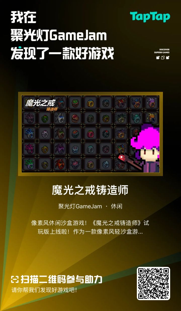传送门:https://www.taptap.cn/poster/NEzmMvINUugV?utm_content=aid685&share_id=VkefGwLqsw0u&utm_medium=share&utm_source=qrcode&app_id=726210欢迎3连助力哦!#单机游戏 #游戏安利 #游戏推荐 #聚光灯gamejam开发者日志 #聚光独立游戏