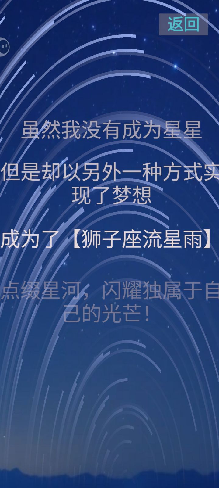 聚光灯GameJam落幕,感谢大家的试玩体验。《狮子座流星雨》将成为过去式,正如游戏中所说:只要我们的脚步不停歇,终会绽放属于自己的光芒。我也将追求新的目标,希望大家终有所成绩。