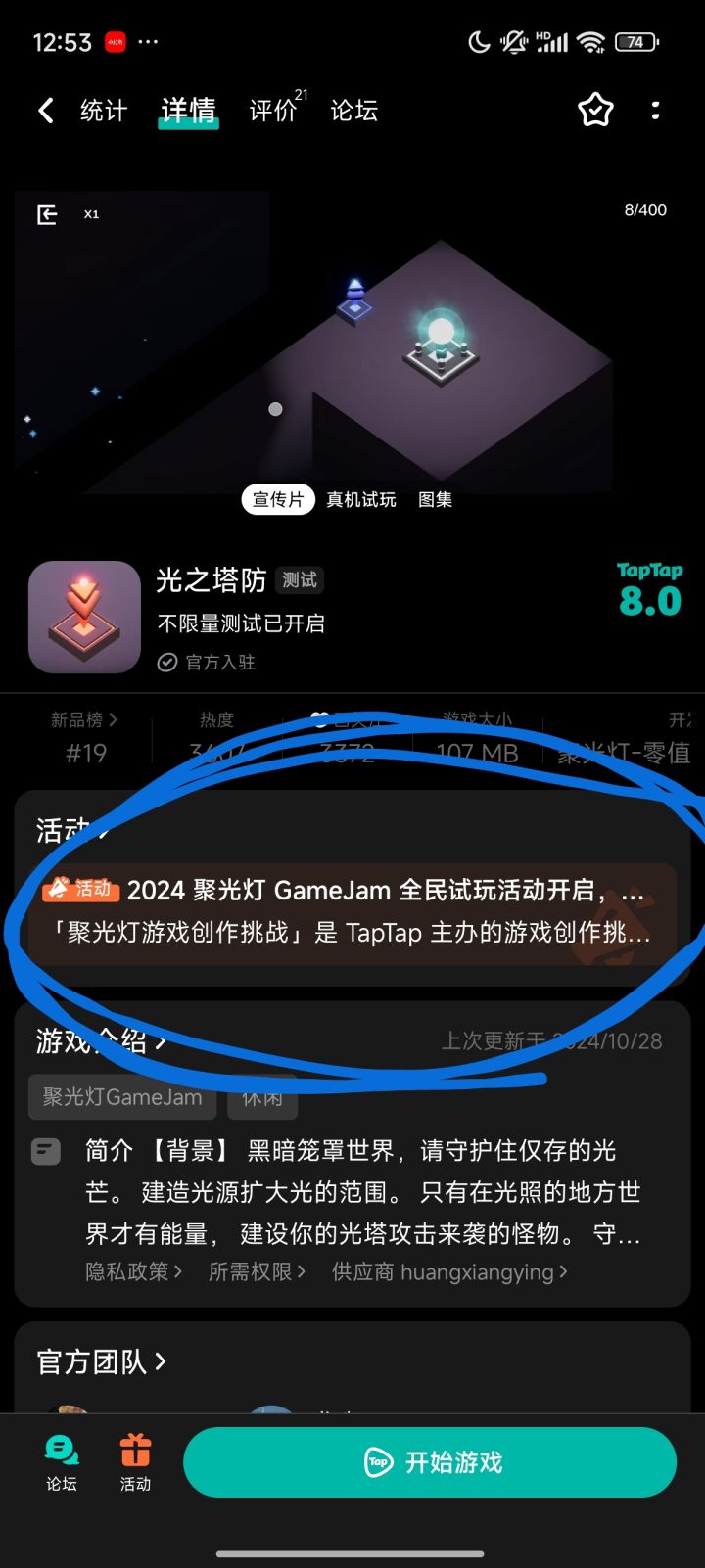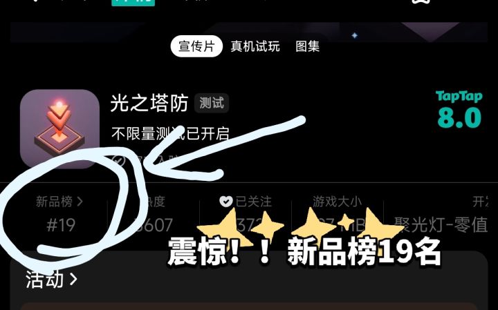 震惊!正要睡觉,发现游戏竟然19名了。前两天还是28名。床上弹起来,告诉大家这个喜讯!谢谢对光之塔防的支持。已经看到很多游戏反馈了,有好的有不好的,感谢评论。只能比赛结束改善了。如果你想支持我们光之塔防,可以按图示进入活动页面,搜索光之塔防点击助力哦!每天有三票,可以投给别的游戏也可以都投给我们哦。