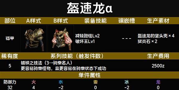 盔速龙α装备图鉴 盔速龙α装备技能与制作材料一览