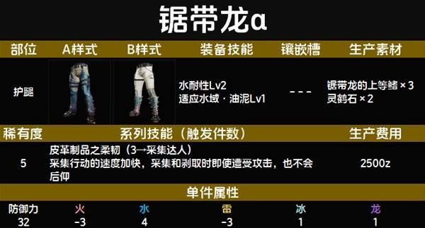 锯带龙α装备图鉴 锯带龙α装备技能与制作材料一览