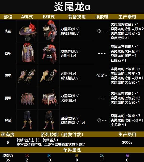 炎尾龙α套装图鉴 炎尾龙α套装技能与制作材料一览