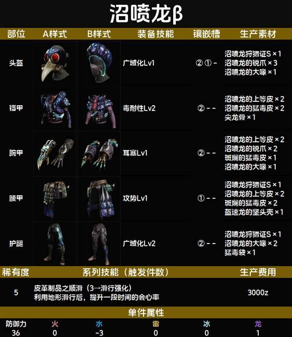 沼喷龙β套装图鉴 沼喷龙β套装技能与制作材料一览