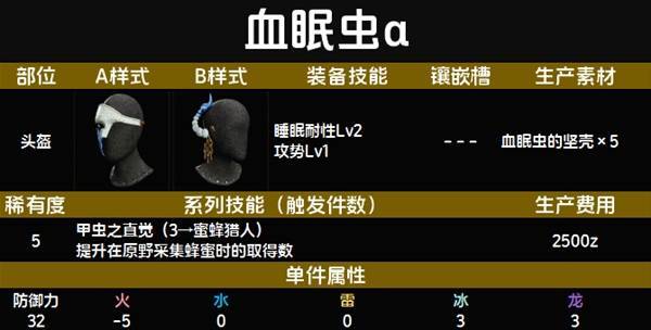 血眠虫α套装图鉴 血眠虫α套装技能与制作材料一览