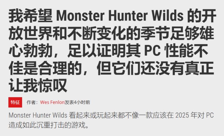 外媒评怪物猎人优化问题,你是性能受害者嘛