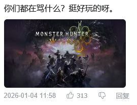 😅2026年新年之际,《怪物猎人》系列制作人辻本良三照例通过视频向全球玩家送上了新年问候与祝福。然而,这份祝福却意外地在部分玩家社区中引发了反效果。不少玩家将不满情绪直接宣泄在祝福视频的评论区中,玩家们对于制作人的不满情绪,或许源自系列最新作《怪物猎人:荒野》出现的一系列问题制作人拜年本是好事,但游戏没做好,这祝福玩家听起来就有点那啥了。也能理解玩家为啥生气,毕竟荒野是真的辜负玩家期待啊#