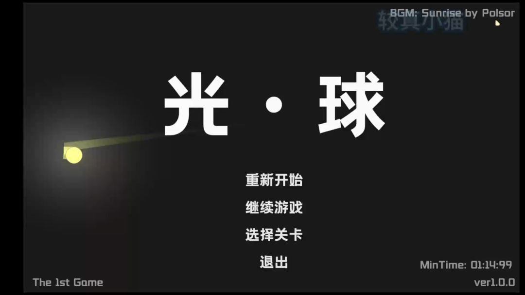 委屈[表情_委屈]委屈[表情_委屈]委屈[表情_委屈]游戏终于肝完了,就差加上虚拟按键以及打包了。(这里就展示主界面了) ———— 游戏《光·球》是一款平台跳跃游戏,需要控制一个球跳跃闯关,因为是demo难度设置的特别低,游戏有15关,但是通关只需要不到五分钟委屈[表情_委屈](好像难度有点太太低了),可以看出游戏拓展性挺高的,demo之后可能会推出更多关卡,以及加上更多玩法,做成音游也不是不可能