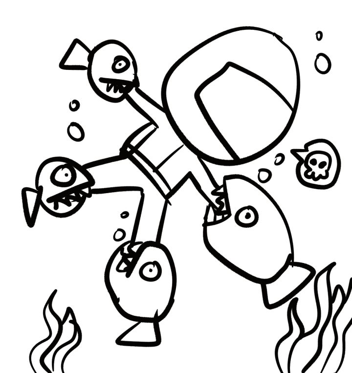 #聚光灯gamejam开发者日志 经过18天紧锣密鼓(鸡飞狗跳)的开发,我们的游戏已经完成了绝大部分内容,进入测试阶段啦!今天是一期关于游戏玩法的介绍~在游戏中,你将扮演一名打捞工,在危机四伏的海底寻找宝藏,并将这些宝藏上交给公司换取积分。你问积分能做什么?升级你的打捞设备、或许在工作结束后得到一份微薄的薪水?那不重要!重要的是,你会在海里遇到许多意想不到的存在:想要将你吞吃入腹的大鱼、看