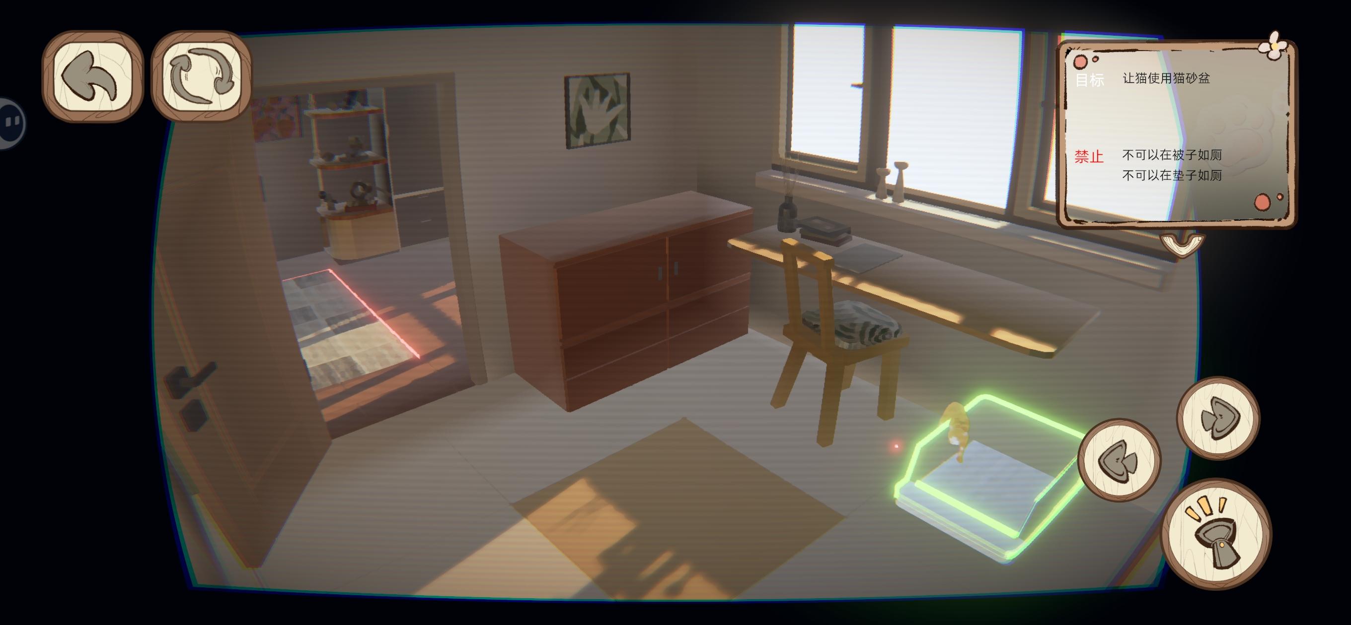 2.第二关第二个监控视角中,那把椅子跳上去,再想跳到椅子对应的那个桌子上会穿模;不知道是不是我手机不够流畅或者有点网卡的问题,猫猫跳到那把椅子上之后,再引过去,会停留在椅子附近一些的空中(因为不知道这会不会影响以后新关卡的解密,就先提出来啦)