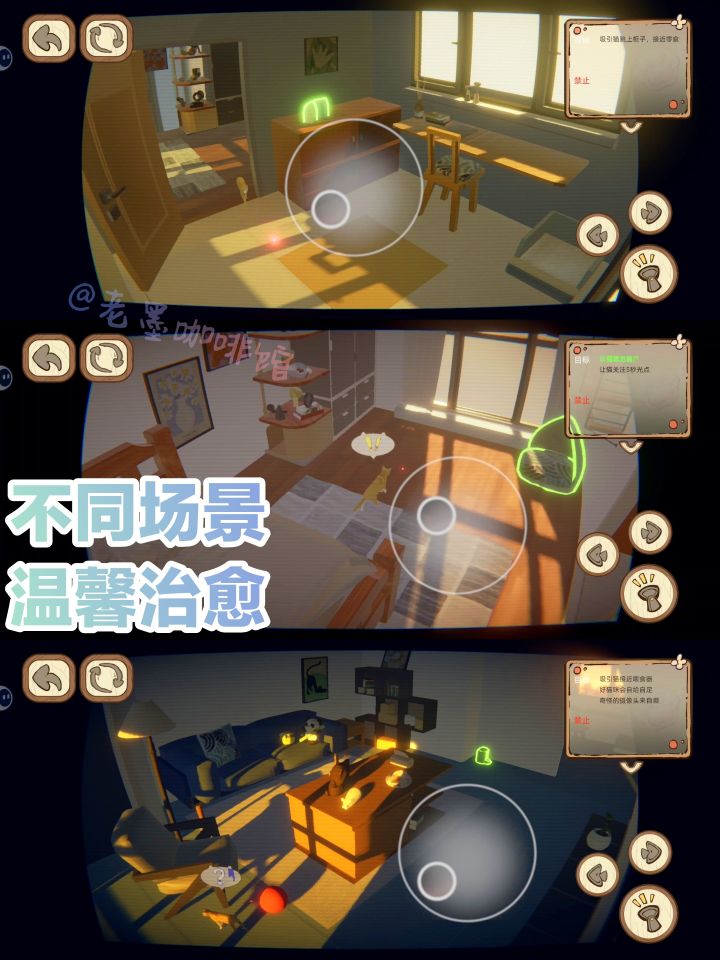 #此处应有猫 你说什么‼️找不到工作,只能去照顾猫猫还有这好事,你们还缺人吗?—————————————————有信息⏩⏩⏩ 这是一款使用激光吸引猫猫照猫猫的休闲游戏,主要玩法是根据雇主的要求,引导猫猫避开某些物品,靠近某些物品(比如喂食器、猫砂盆)。【实机💡试玩】https://www.taptap.cn/moment/60159881632