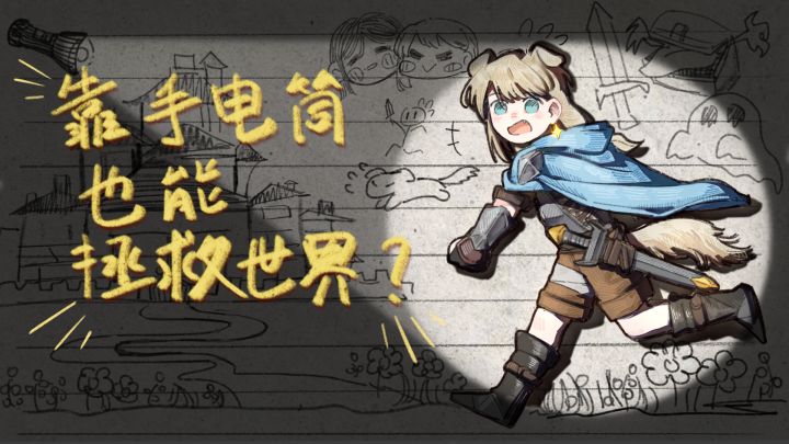 本次为大家带来的是——锵锵,是我们的主美老师绘制的主视觉图,以及相关的一些在世界观层面上的简要介绍。首先,我们的游戏正式定名为《靠手电筒也能拯救世界?》。顾名思义,玩家们需要扮演骑士——手里的手电筒,协助误入洞穴的失忆小骑士“过关斩将”,回到她的小镇。等下等下,这不对啊,如果只是一只手电筒的话,“拯救世界”又要从何谈起?如果说Lighting是照耀世界的光,那手电筒与之相比不就像萤火虫之于地球