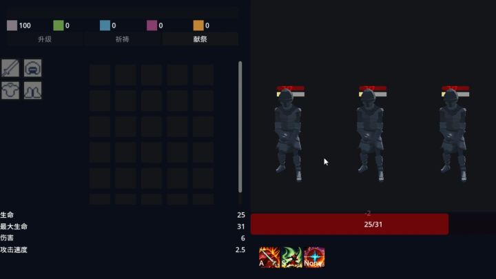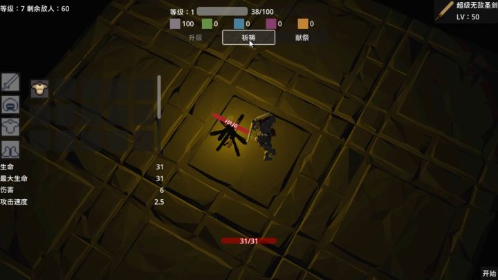 更新一下进度升级∶击杀敌人会获得能量,消耗一定能量升级篝火,每个等级都有不同的掉落概率祈祷∶消耗能量获得装备,篝火等级越高获得高品质装备的概率越高献祭:将背包内的装备转化为能量#TapTap聚光灯独立游戏 #聚光灯gamejam开发者日志