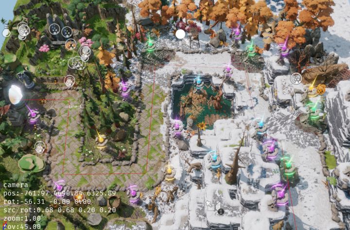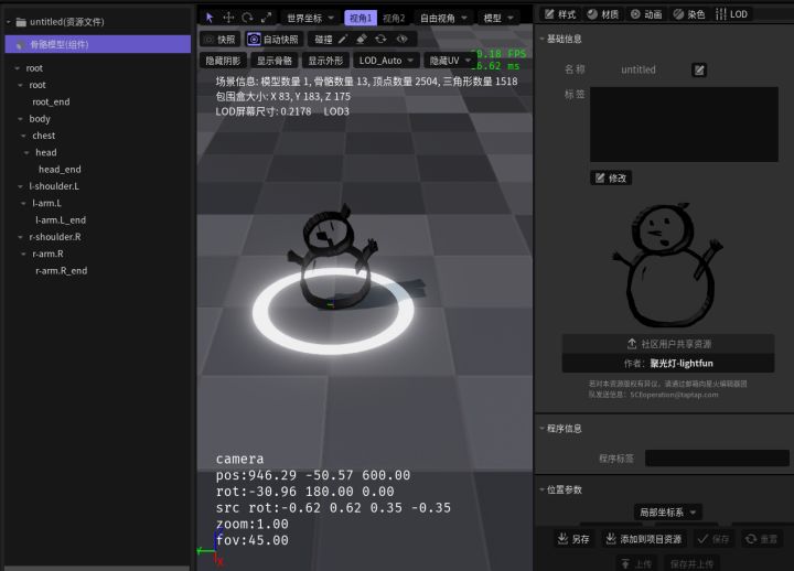 这是第一个场景,搭建他费了很多功夫,由于是边学边做,过程充满了各种小问号。比如一开始很难理解单位和素材的区别。还有就是完全不明白模型的动作是什么,怎么和场景以及角色技能个关联。后面后面遇到了一个更棘手的问题,我发现星火似乎没有办法实现物理引擎。或者说也许有解决方案,但并没有在新手教程里列出来。这就让我做的类似推雪球的特效没有办法实现了。虽然后来了解到可以写脚本。但是那个工程量会巨大无比。遗憾只能