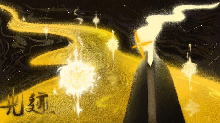 在大荒之地和甘水之间,有位神女名叫羲和,生下了十个儿子,是太阳金乌。每天太阳从东方升起时,都是由金乌载着太阳出行。这些金乌调皮捣蛋,一次他们兄弟十个全都飞上天空,烤焦了庄稼,枯萎了草木,百姓没有食物。勇士后羿拿出神弓,射落了十个太阳,大地陷入了黑暗。羲和非常悲伤,她用自己的神力去寻找儿子的踪迹,希望恢复天地间的光明,于是踏上了漫长的旅途。羲和女神需要在黑暗中收集光之碎片,通过用自己的光芒体来控制能量块改变地形,复原自己的孩子。