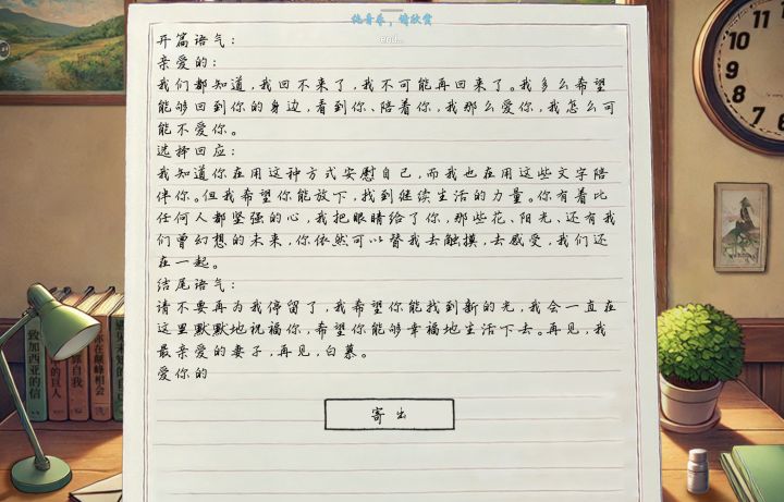 总结 - 玩家认可书信互动的沉浸感与剧情反转,并赞扬手写体营造的复古氛围。但部分玩家反映,缺乏存档点导致频繁“失联”后需重头来过,增加了挫败感。