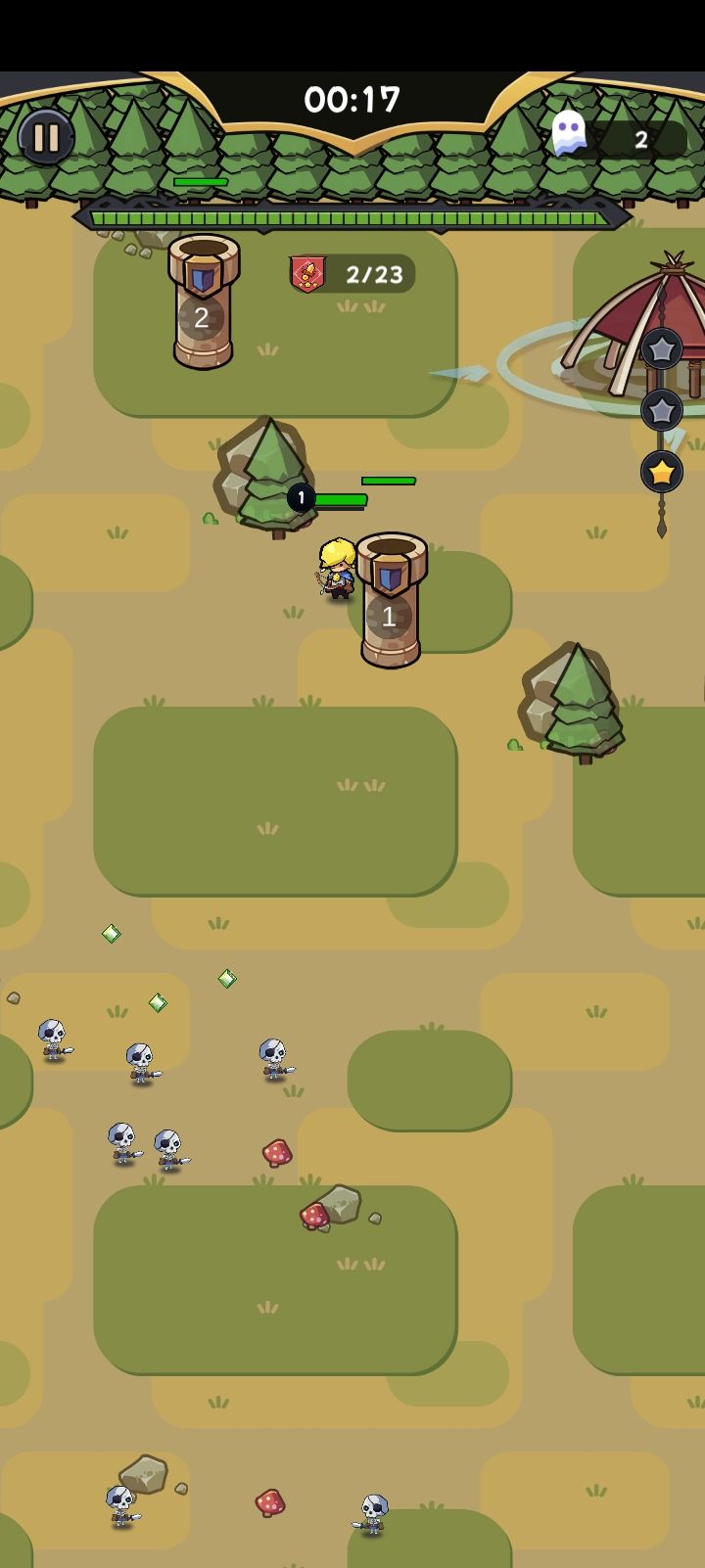 战斗内养成是比较常规的肉鸽选项,内容很丰富,可以走炮塔流或者英雄流,不过关卡三星条件有一些限制,造成有些关卡可选择性降低。