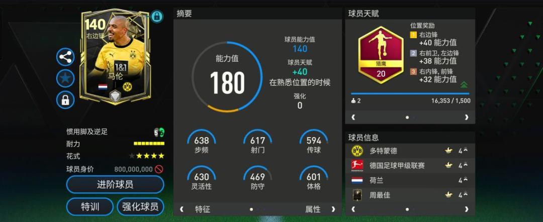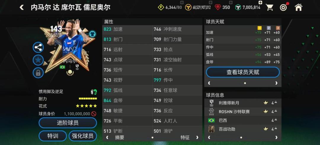 天赋方面,内马尔配备了边锋热门的猎鹰,对他的加速、射门、传中、弧线、盘带五项数据提升显著。这让内马尔在实战中的边路冲击力、传中助攻能力等多项进攻能力都有增强。花式方面,内马尔基础花式为高级油炸丸子,结合五星花式星级,他的持球突破能力也是达到了版本一流水准! 特性方面,反越位大师提升了内马尔的跑位意识;外脚背射门、精准射门增强了内马尔的得分能力;盘带大师、天赋异禀让内马尔的持球手感有进一步优化;花式