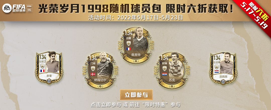 光荣岁月1998随机球员包 限时六折获取!