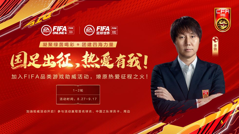 国足出征,热爱有我!凝聚绿茵喝彩,团结四海力量!现在加入FIFA品类游戏助威活动,燎原热爱征程之火! 活动时间: 8.27-9.17 1-2轮 12强赛游戏内竞猜 9.30-10.11 3-4轮 12强赛游戏内竞猜 11.5-11.17 5-6轮 嘉年华官网 1.21-2.7 7-8轮 官网 3.18-3.30 9-10轮 官网 参与方式: 投稿/回帖内容需要以“ 中国足球国家队加油“为主题,支持
