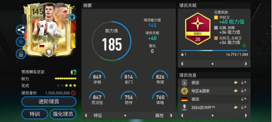 推荐球员 中前卫:克罗斯 克罗斯是一名攻守俱佳的中场。天赋方面,他配备了指南针,进一步增强了传球、盘带等表现。花式方面,尽管只有三星花式星级,但是克罗斯的基础花式配备了马赛回旋,这让他的中场过人效率显著提升。 视频1 实战中,克罗斯不仅进攻端的传球组织能力出色,防守端亦有稳定发挥。进攻端,克罗斯的盘控手感出色,持球抗干扰效果相当稳定,在禁区外的远射经常可以为玩家带来惊喜。防守端,克罗斯的铲抢技术中