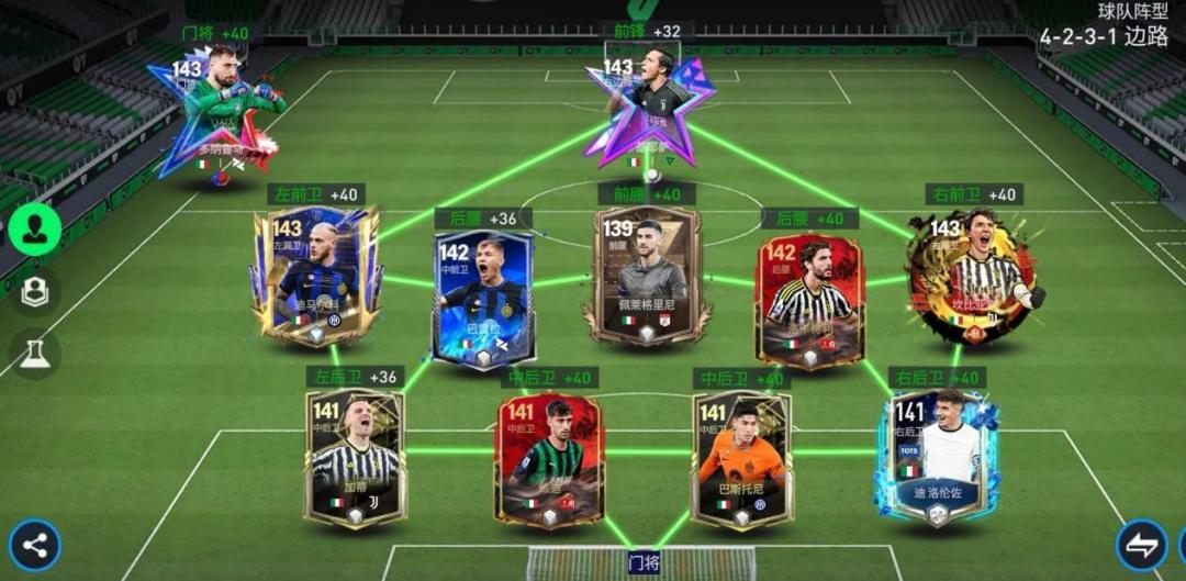 各位《FC足球世界》的玩家朋友们,今年夏天我们就将迎来新一届的欧洲杯赛事,作为世界足坛极具影响力的国家队赛事之一,每届欧洲杯都会吸引无数球迷的关注,众多足坛现役巨星都将为自己的国家队去争夺这份殊荣!今天我们就来看一下,欧洲豪门球队意大利的队套推荐吧! 阵容方面 首发阵容(4-2-3-1边路) 前场:基耶萨 中场:迪马尔科、巴雷拉、佩莱格里尼、洛卡特利、坎比亚索 后场:加蒂、洛迪、巴斯托尼、迪洛