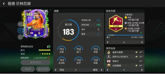 银河战舰新核-前锋贝林厄姆(球员卡介绍)