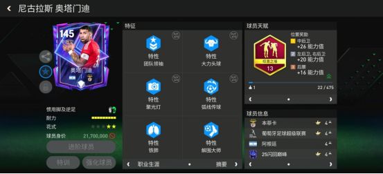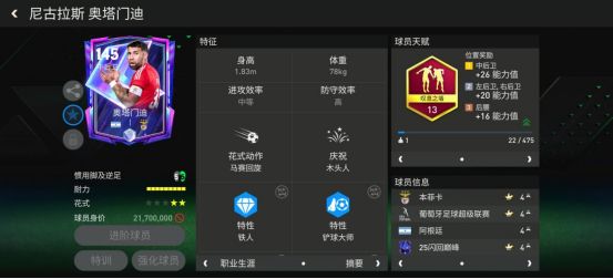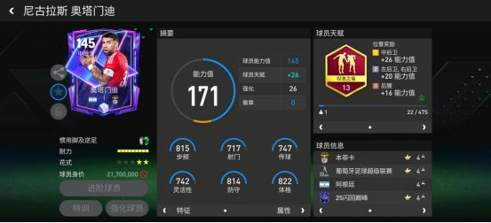 欧冠淘汰赛球员推荐——奥塔门迪(适合玩家及代替球员)
