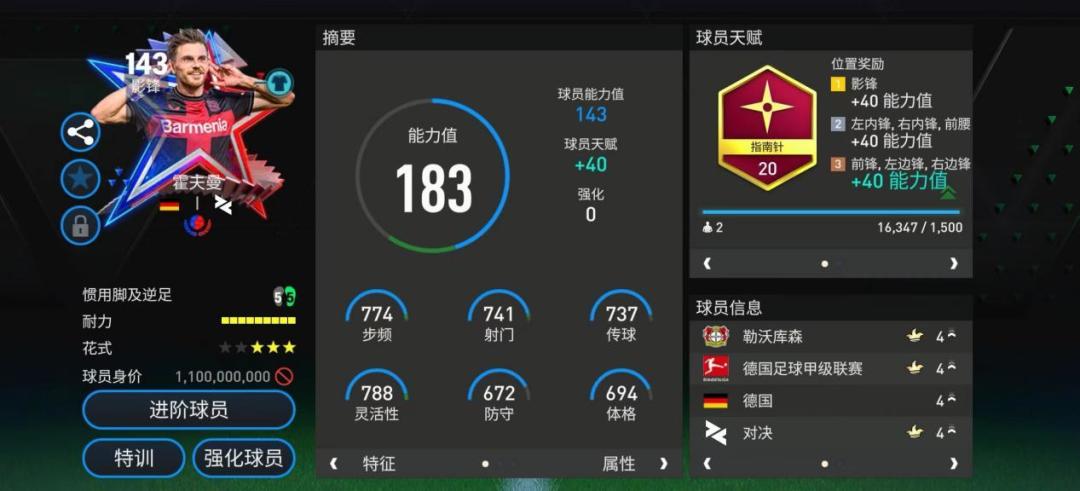 莫伦特斯的英雄球员卡在特性配置以及实战表现方面同样非常出色。 特性方面,莫伦特斯配备了八项特性,分别是铁人、反越位大师、精准射门、天赋异禀、大力头球、外脚背射门、铁肺、花式触球。八项特性对应提升了莫伦特斯的头球得分、地面得分稳定性,并且增强了他的主动跑位意识,这让莫伦特斯的锋线表现更加出色。实战中,莫伦特斯在进攻端的终结能力稳定,虽然他没有德罗巴、哈兰德那种高大的身材,但是他的抢点意识以及弹跳能力