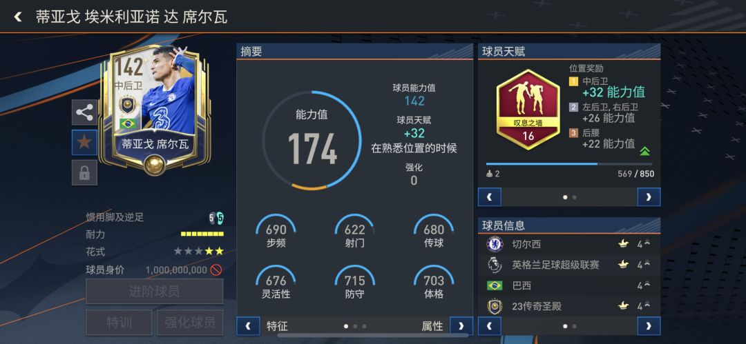 亲爱的玩家朋友们,23传奇圣殿系列球员强势来袭,大量传奇球员和实力实力派老将球员携手登场,供玩家挑选,今天就让我们一起来关注一下有哪些23传奇圣殿球员值得入手使用! 中后卫:席尔瓦 即将年满39岁的老将蒂亚戈席尔瓦目前依旧是切尔西队中的稳定主力,他曾作为队长带领巴西国家队参加过3次世界杯,并帮助桑巴军团在2019年夺得美洲杯冠军。蒂亚戈席尔瓦的防守意识及防守选位出众,身体强壮,正面防守能力强,头球