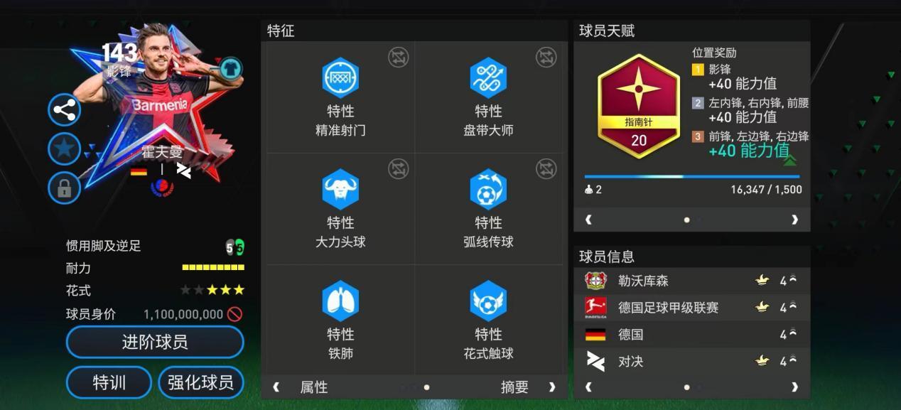 莫伦特斯的英雄球员卡在特性配置以及实战表现方面同样非常出色。 特性方面,莫伦特斯配备了八项特性,分别是铁人、反越位大师、精准射门、天赋异禀、大力头球、外脚背射门、铁肺、花式触球。八项特性对应提升了莫伦特斯的头球得分、地面得分稳定性,并且增强了他的主动跑位意识,这让莫伦特斯的锋线表现更加出色。实战中,莫伦特斯在进攻端的终结能力稳定,虽然他没有德罗巴、哈兰德那种高大的身材,但是他的抢点意识以及弹跳能力