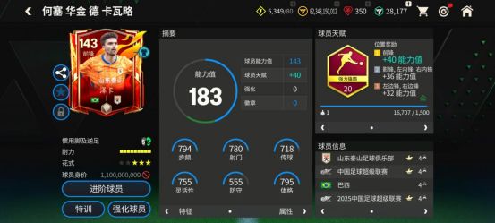 韦世豪是国足95一代的领军人物,其还在青训营的时候就收到过阿贾克斯名宿奥维马斯的好评,被寄予厚望。经过在中超以及葡萄牙联赛多年的历练,他的技术能力越发纯熟,心态与经济素养也日趋稳定,如今的他是国足新一代的顶梁柱,是进攻端不可或缺的关键因素。 在我们游戏中,韦世豪推出的球员卡版本并不多,近期的25中超联赛活动中推出的这张能力值147的“卡王”级球员卡受到了玩家们的广泛关注,本期我们就来看看这张卡有哪