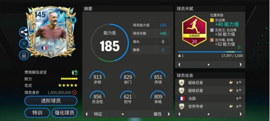 赛季最佳活动中,来自各大联赛的传奇球员持续登场,尽管还有多个联赛章节没有开启,但现有的传奇球员已经让F宝挑花了眼!本期文章,F宝就带兄弟们一起看看由赛季最佳传奇球员所组成的队套,在游戏中的实力如何! 顶级球星 左边锋:里贝里 球员天赋:边路超跑(加速、冲刺速度、长传、传中、盘带) 花式配置:高级油炸丸子+五星花式星级 球员点评:里贝里身材瘦小,但是盘带灵活性十足,是一名小范围摆脱能力一流的边路持球